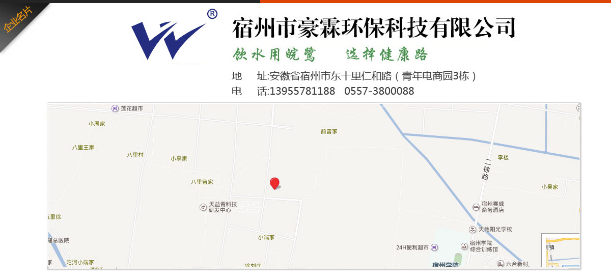 - 宿州市豪霖環(huán)保科技有限公司專業(yè)致力于水處理產(chǎn)品和系統(tǒng)水處理工程,集產(chǎn)品的開發(fā)與銷售、工程配套與安裝、技術(shù)咨詢與服務于一體的新型環(huán)保企業(yè)。主營產(chǎn)品:家用、商用純水機系列,能量活水機系列,家用、中央用凈水器系列,管線機,泵、膜系列,各種零配件、水處理耗材等配套產(chǎn)品系列,循環(huán)冷卻水處理系統(tǒng),鍋爐軟化水處理系統(tǒng),海水、苦咸水淡化、污水處理系統(tǒng),軟化及過濾裝備,紫外線及臭氧消毒設備等全部產(chǎn)品。
